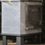重量物の薪ストーブはパレットに乗せられている。 パレットと薪ストーブ本体は輸送中の転倒防止のため固定されている。各メーカーによって固定...